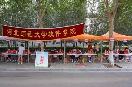 迎新现场,几顶帐篷撑起一方天地,志愿者们满心期待、满怀激情、履职尽责,积极帮助萌新们搬运行李、办理手续、适应校园,萌新们洋溢着快乐的笑容,带着对未来生活的憧憬,纷纷在宣传牌前留下了靓丽的身影。